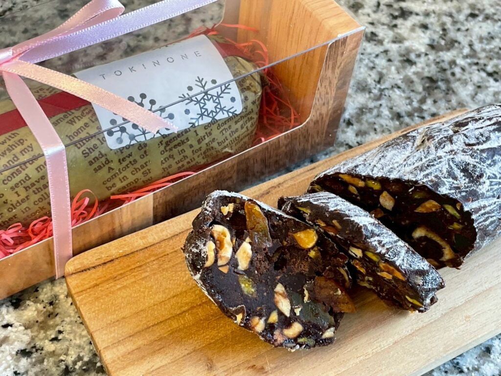 サラミのような形をしたユニークなチョコレートです。