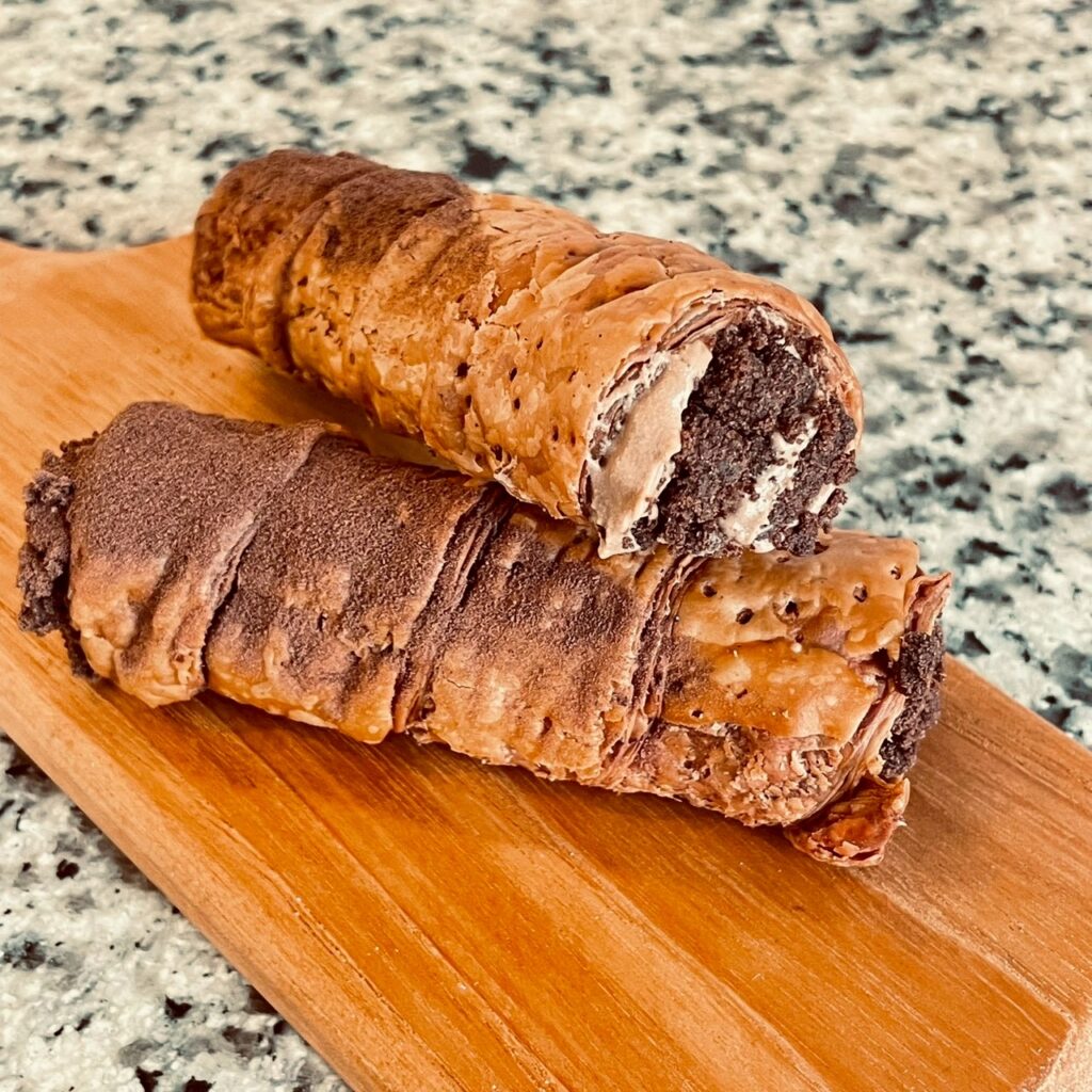 ココアを練り込んだ「フルタージュ」生地を、螺旋状に香ばしく焼き上げました。