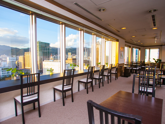 神戸市産業振興センター10階に位置する店内からは、神戸の街並みやハーバーランドを見渡す開放的な景色が広がります。